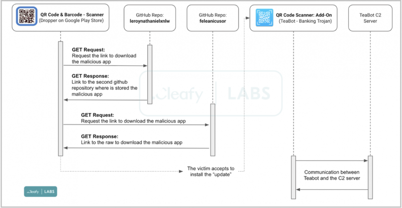 Банковский троян TeaBot снова обнаружен в магазине Google Play Store, где он выдавал себя за приложение для чтения QR-кодов (QR Code & Barcode — Scanner) и успел распространиться более чем на 10 000 устройств. Малварь нацелена на пользователей более 400 банковских и финансовых приложений, в том числе из России, Китая и США.