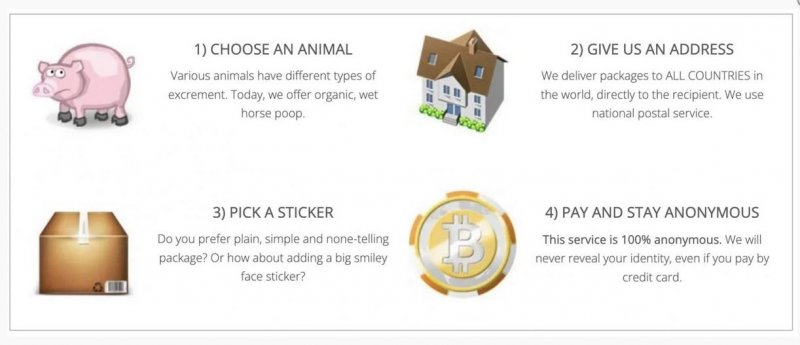 «Представьте людей, которые бесят вас больше всего. Раздражающий коллега. Школьный учитель. Ваша бывшая жена. Неприятный начальник. Завистливый сосед. Тот успешный бывший одноклассник. А если бы вы могли отправить им вонючий сюрприз? Ничто не сравнится с выражением лица получателя после вскрытия коробки!», — пишут создатели ShitExpress.