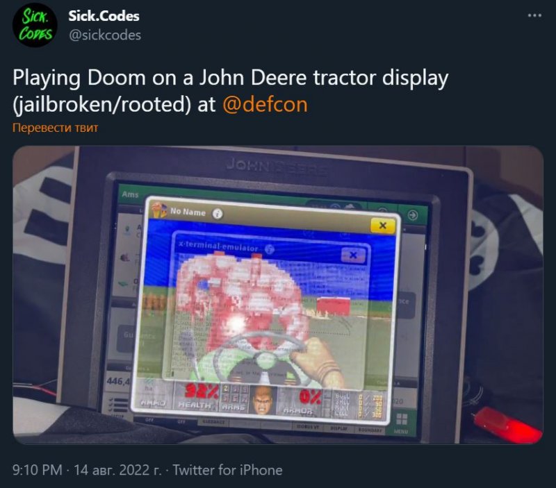 На DEF CON исследователь не отказал себя в удовольствии запустить Doom на взломанном дисплее трактора.
