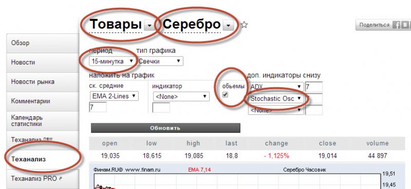 Чтобы делать анализ я пользовалась сервисом finam.ru. Посмотрите на скриншот и, перейдя по ссылке для анализа, поставьте все так, как на скриншоте: