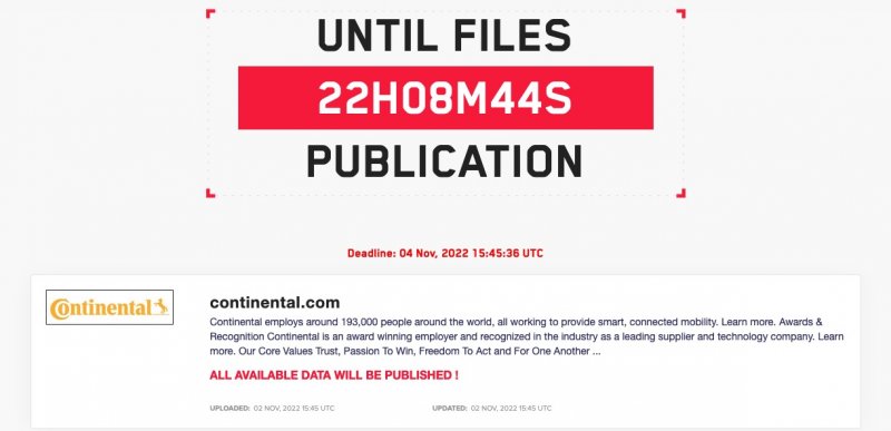 Хак-группа LockBit взяла на себя ответственность за атаку на немецкую компанию Continental — производителя шин, автомобильной электроники и других комплектующих. Злоумышленники заявляют, что похитили данные из систем Continental и угрожают опубликовать их на своем «сайте для утечек», если компания не выплатит выкуп.