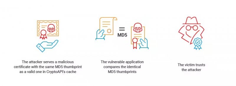 «В частности, он обрабатывает сертификаты — от их чтения и парсинга до проверки в центрах сертификации. Браузеры так же используют CryptoAPI для проверки сертификатов TLS. В результате этого процесса появляется иконка замка [в браузере], на которую всегда учат обращать внимание. Нетрудно представить, что уязвимость в процессе верификации сертификатов очень выгодна для злоумышленников, поскольку позволяет им замаскироваться и обойти критически важные средства защиты».