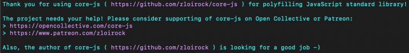 Хотя в заключении Пушкарев провел только 10 месяцев, и после вышел досрочно, на адвокатов и выплаты родственникам потерпевших требовалось около 80 000 долларов. В итоге он решил объявить о сборе средств и вообще привлечь внимание к тому факту, что core-js нужны пожертвования. Так в сообщении об установке core-js появилось такое послание: