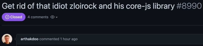 Свое объемное послание сообществу Пушкарев опубликовал на GitHub, в примечаниях в репозиторию core-js. Он пишет, что опенсорсное ПО «cломано в корне», и он мог бы вообще перестать заниматься этим, но решил «дать опенсорсу последний шанс».