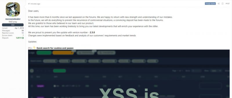 Создатели вредоноса Raccoon прервали шестимесячное молчание и, невзирая на арест основного разработчика, представили новую версию стилера — 2.3.0.