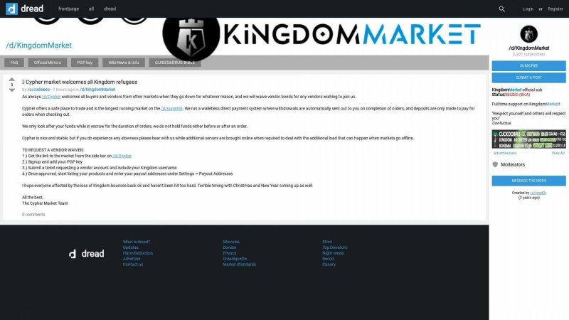 Интересно, что по информации специалистов компании KELA, конкурирующие маркетплейсы уже активно приглашают пользователей Kingdom Market к себе. Так, подобные «приглашения» уже опубликовали администраторы торговых площадок Drughub и Cypher.