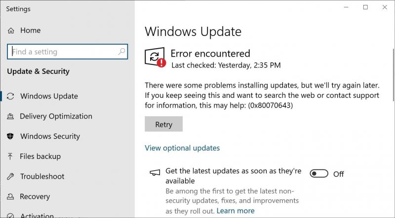 Однако при попытке установить обновление пользователи Windows 10 массово получают сообщение об ошибке 0x80070643 и сбое установки.