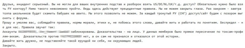Исследователи отмечают, что одна из первых атак MorLock в конце января спровоцировала нешуточный скандал на русскоязычном хакерском форуме XSS. Дело в том, что атака на российскую компанию с использованием вымогателя LockBit 3 (Black) нарушила негласное правило — «не работать по РУ». По итогам обсуждения администраторы форума заблокировали аккаунты ряда пользователей, связанных с атаками на Россию. По данным FACCT, некоторые из них были непосредственно связаны с группой MorLock.