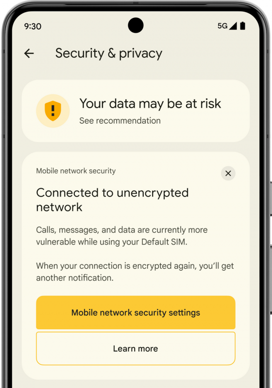 «Мы уведомим вас, если подключение к сотовой сети не зашифровано, что может привести к перехвату голосового и SMS-трафика или потенциально может быть видно другим. Это поможет предупредить пользователей о том, что они стали мишенью преступников, которые пытаются перехватить их трафик или внедрить мошеннические SMS-сообщения, — рассказываю в Google. — Мы поможем пользователям, подверженным риску, например журналистам или диссидентам, предупредив их о том, что потенциально фальшивая базовая станция или средство наблюдения фиксирует их местоположение с помощью идентификатора устройства».