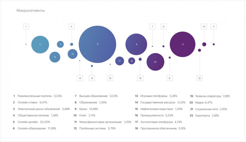 Как уже было сказано выше, наибольшее количество атак в первом квартале пришлось на сегмент электронной коммерции (25,26% всех атак). На втором месте оказался сегмент финансовых технологий (22,63%), а на третьем – образовательные технологии (13,16%).