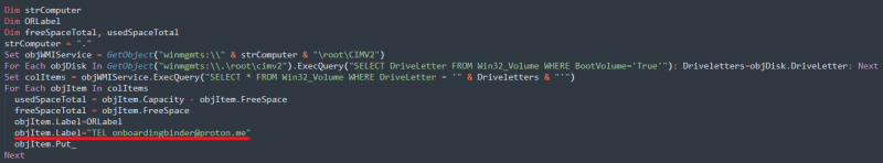 Кроме того, отмечается, что злоумышленники отключают и удаляют защитные инструменты, используемые для защиты ключа шифрования BitLocker, чтобы пользователь не смог их восстановить. Также атакующий скрипт меняет метку новых загрузочных разделов на адрес электронной почты злоумышленников, чтобы жертвы могли связаться с ними.