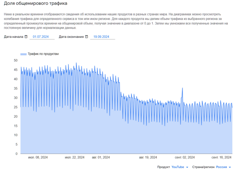 Проблемы в работе сервиса хорошо заметны, к примеру, в официальной статистике Google.