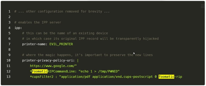Оказалось, что если атакующий может развернуть собственный IPP-сервер и создать вредоносный PostScript Printer Description (PPD) принтера, который можно вручную прорекламировать для cups-browsed, работающего на UDP-порту 631. В результате удаленная машина автоматически установит вредоносный принтер и сделает его доступным для печати. И если пользователь выполнит печатать на этом новом принтере, вредоносная команда будет выполнена на машине жертвы.