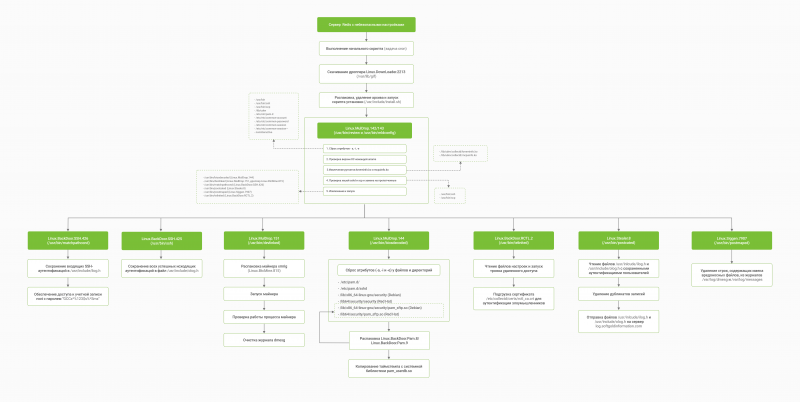 Этот исполняемый файл проверяет версию ядра ОС, отключает защитный модуль SELinux, а затем распаковывает в системе файлы руткита Linux.Rootkit.400, майнера Linux.BtcMine.815, а также бэкдоров Linux.BackDoor.Pam.8/9, Linux.BackDoor.SSH.425/426 и трояна Linux.BackDoor.RCTL.2 для удаленного доступа.
