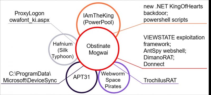 В своем отчете исследователи отмечают, что Obstinate Mogwai имеет пересечения с другими группировками азиатского региона, а наибольшее чисто совпадений было обнаружено с азиатской APT IAmTheKing (она же PowerPool). Из-за этого специалисты полагают, что Obstinate Mogwai может оказаться наследником IAmTheKing с обновленным инструментарием.