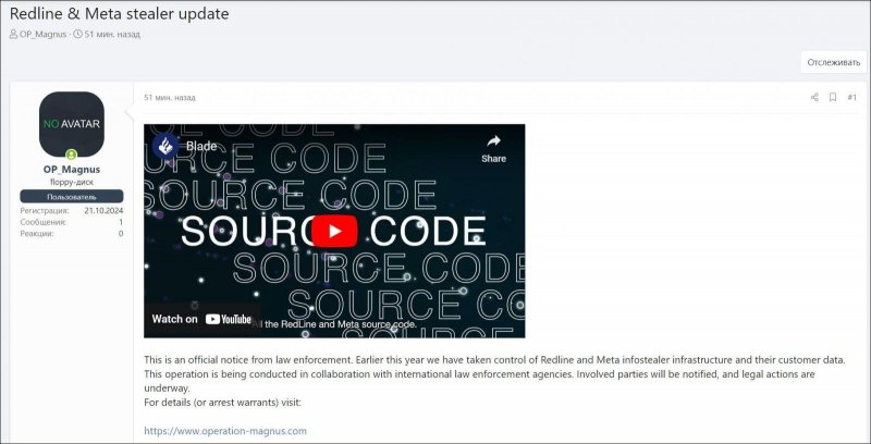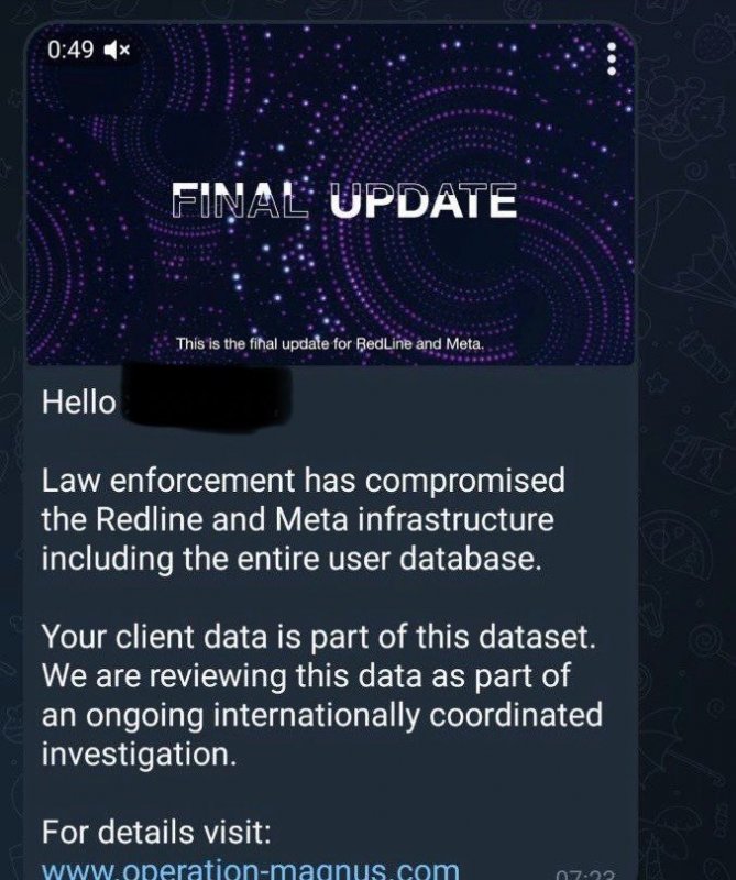 «Правоохранительные органы скомпрометировали инфраструктуру Redline и Meta, включая всю базу данных пользователей. Данные вашего клиента являются частью этой БД. Мы проверяем эти данные в рамках совместного международного расследования», — гласит сообщение.