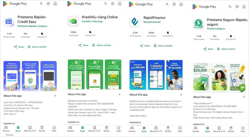 - Préstamo Rápido-Credit Easy — 1 000 000 загрузок, в основном ориентировано на Колумбию;