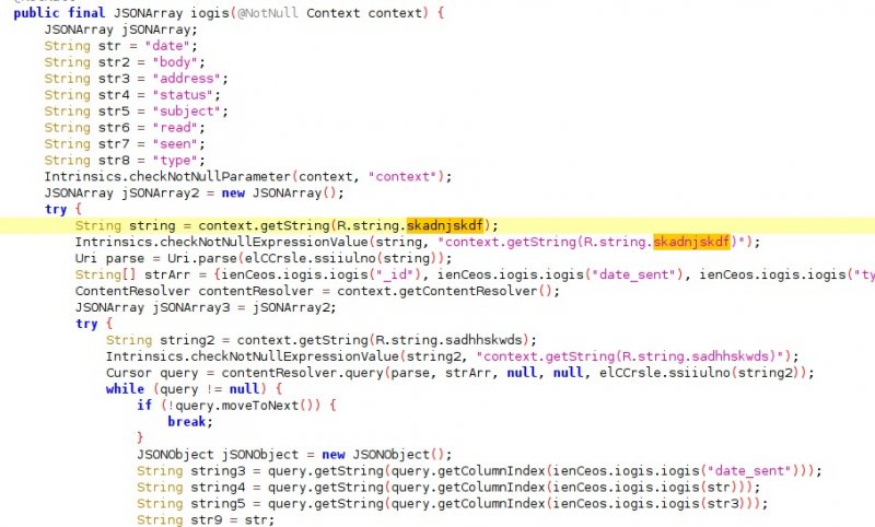 Приложение извлекает все SMS-сообщения с устройства жертвы