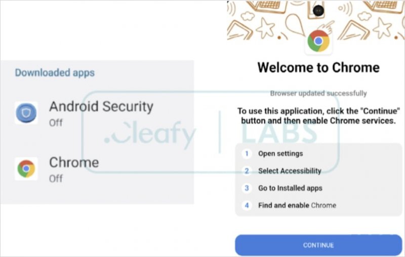 DroidBot зачастую маскируется под такие приложения как Google Chrome, Google Play Store или Android Security, чтобы обманом вынудить пользователей установить малварь. Невзирая на эти безобидные личины, на зараженном устройстве он действует как троян и стремится похитить конфиденциальную информацию из конкретных приложений.