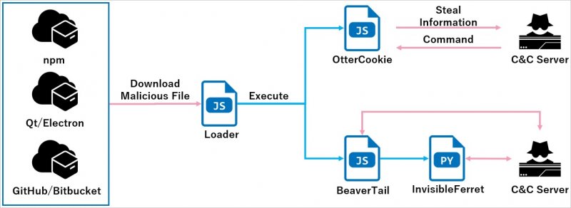 Как и в атаках, задокументированных ранее, малварь проникает в системы жертв через проекты Node.js или пакеты npm, загруженные с GitHub или Bitbucket. Кроме того, в последнее время злоумышленники стали использовать файлы приложений Qt или Electron.