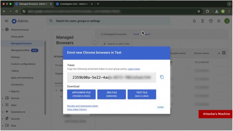Атака начинается с регистрации вредоносного домена Google Workspace, где злоумышленник настраивает несколько пользовательских профилей, отключив защитные функции вроде многофакторной аутентификации. Этот домен Workspace будет использоваться в фоновом режиме для создания управляемого профиля на устройстве жертвы.