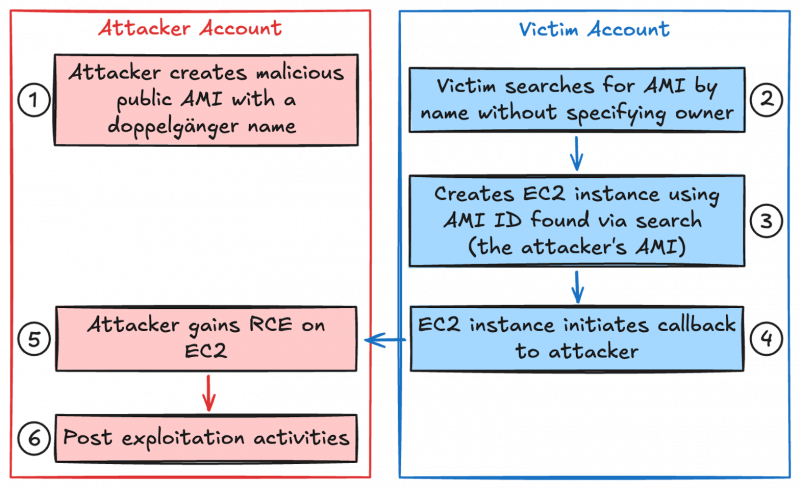 По сути, злоумышленнику достаточно иметь учетную запись AWS, чтобы опубликовать свой вредоносный AMI в публичном каталоге Community AMI и выбрать имя, которое имитирует целевой AMI доверенного владельца.