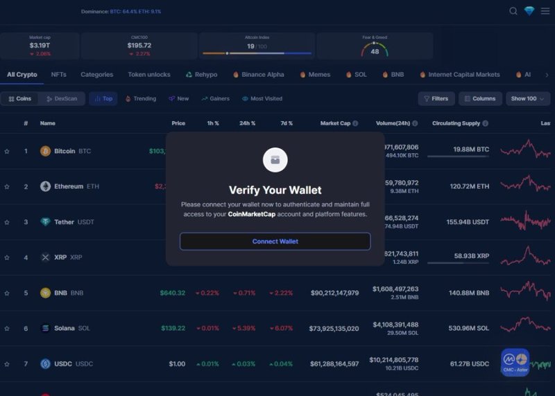 В минувшую пятницу, 20 июня 2025 года, посетители CoinMarketCap заметили странные всплывающие окна, которые предлагали им подключить свои кошельки к сайту. Если пользователи следовали инструкциям, вредоносный скрипт похищал у них криптовалюту.