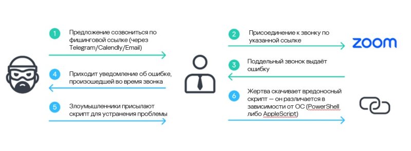 В ходе таких встреч пользователям предлагается якобы обновить клиентское приложение для устранения проблемы со звуком. На самом деле это приводит к загрузке вредоносного скрипта и заражению устройства малварью.
