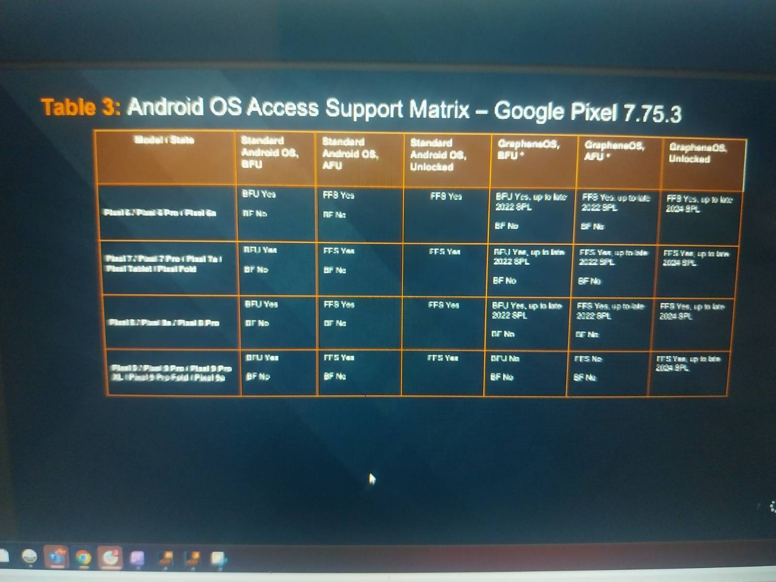 Издание 404 Media обратило внимание на утечку, опубликованную на форумах GrapheneOS. Анонимный инсайдер, скрывающийся под ником rogueFed, обнародовал скриншоты с закрытого брифинга компании Cellebrite для правоохранительных органов. На изображениях видно, какие модели смартфонов Google Pixel уязвимы для взлома инструментами компании. Как выяснилось, кастомная GrapheneOS защищает устройства лучше, чем стоковая система Google.