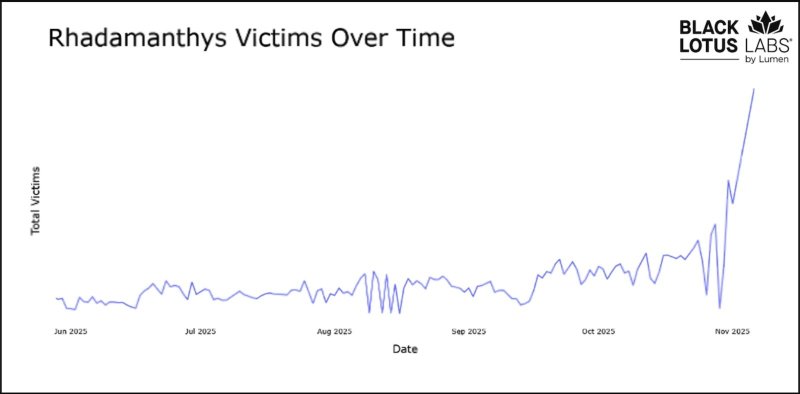 Как сообщают специалисты Lumen, помогавшие правоохранителям в проведении операции, резкий прирост активности стилера Rhadamanthys пришелся на октябрь-ноябрь 2025 года.