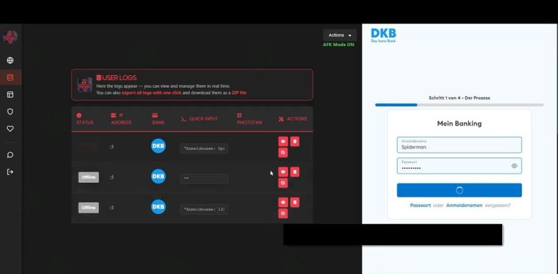 Через веб-панель Spiderman операторы могут наблюдать за сеансами жертв в режиме реального времени, экспортировать данные одним кликом, перехватывать учетные данные, PhotoTAN и одноразовые пароли «на лету», а также собирать информацию о банковских картах.