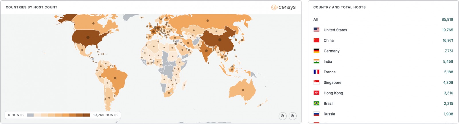 При этом, согласно статистике платформы Censys, по состоянию на 27 декабря в интернете можно было обнаружить более 87 000 потенциально уязвимых экземпляров MongoDB. Большинство из них находятся в США (почти 20 000 серверов), а около 2000 установок приходится на Россию.