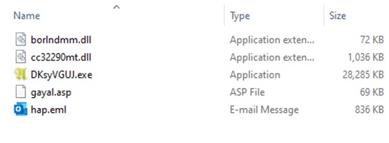Скрипты включают функции обхода песочницы и расшифровки ZIP-архива, который распаковывается в директорию .temp. Внутри него находятся пять файлов: легитимное приложение Ahnenblatt4.exe для систематизации генеалогических данных, несколько библиотек и пропатченная cc32290mt.dll, которая перехватывает управление при запуске и начинает первую стадию атаки.