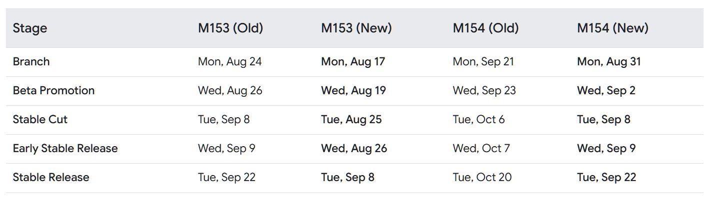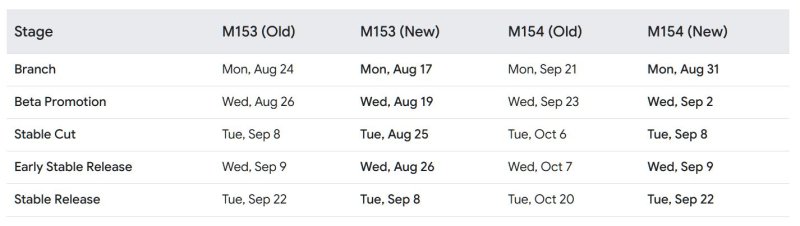Начиная с релиза Chrome 153, запланированного на 8 сентября 2026 года, разработчики будут выпускать по две стабильные версии браузера каждый месяц. Это изменит устоявшийся четырехнедельный график, которого в Google придерживались с 2021 года. Новая схема затронет бета- и стабильные версии на всех платформах (десктопах, Android и iOS).