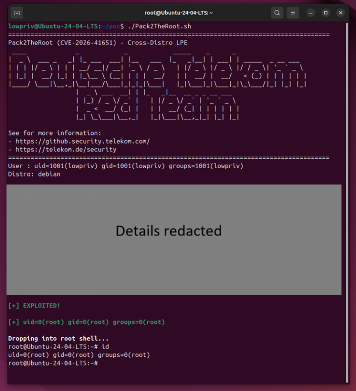 Проведенные специалистами тесты подтвердили, что эксплуатация проблемы возможна в Ubuntu Desktop 18.04 (EOL), 24.04.4 (LTS), 26.04 (LTS beta), Ubuntu Server 22.04–24.04 (LTS), Debian Desktop Trixie 13.4, RockyLinux Desktop 10.1, Fedora 43 Desktop и Fedora 43 Server. При этом подчеркивается, что это не исчерпывающий список, и уязвимыми можно считать все дистрибутивы, в которых PackageKit предустановлен и включен по умолчанию.