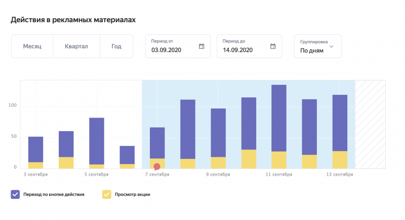 ● по действиям в карточке — посмотрим, кто звонит, интересуется акцией или нажимает на кнопку, и оптимизируем настройки рекламы с помощью этих данных.