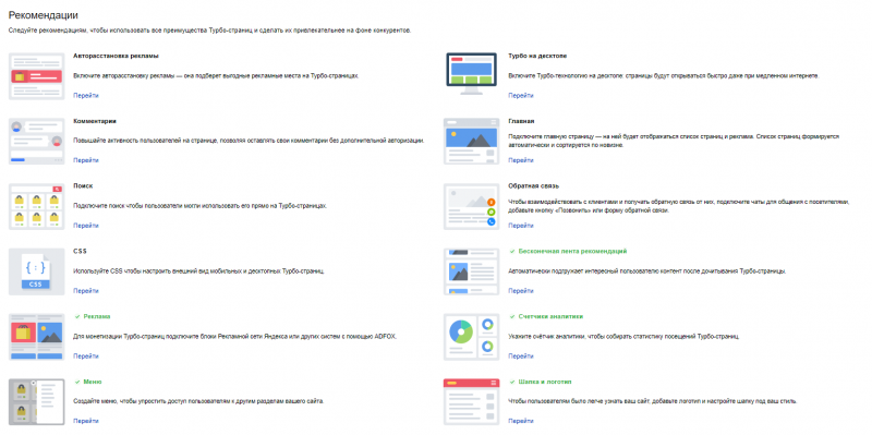 Выполненные рекомендации отмечаются зелёными галочками.