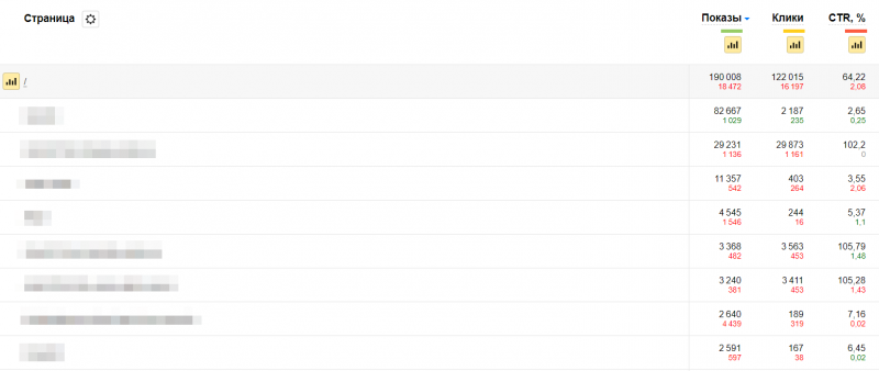 Список первых 3000 страниц сайта, которые находятся не ниже 50 позиции в поисковой выдаче, можно посмотреть на странице «Статистика страниц».