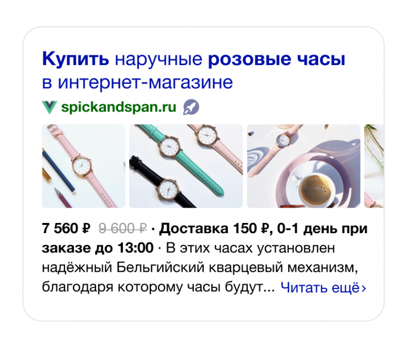 Теперь товарные сниппеты сформируются автоматически из карточек и списков товаров в Турбо. Новые сниппеты стали более информативными и привлекательными для пользователей, в них добавлены карточки товаров с изображениями, ценами и скидками. Они показываются пользователям на мобильных устройствах. Подробнее о новых сниппетах и о том, как их подключить, читайте в посте.