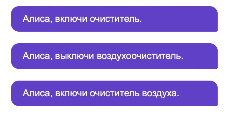 Использование правильных типов устройств дает возможность пользователю взаимодействовать с техникой более комфортно и естественно, используя набор фраз, доступный для данного устройства. Примеры фраз, доступных для управления новым видом устройств