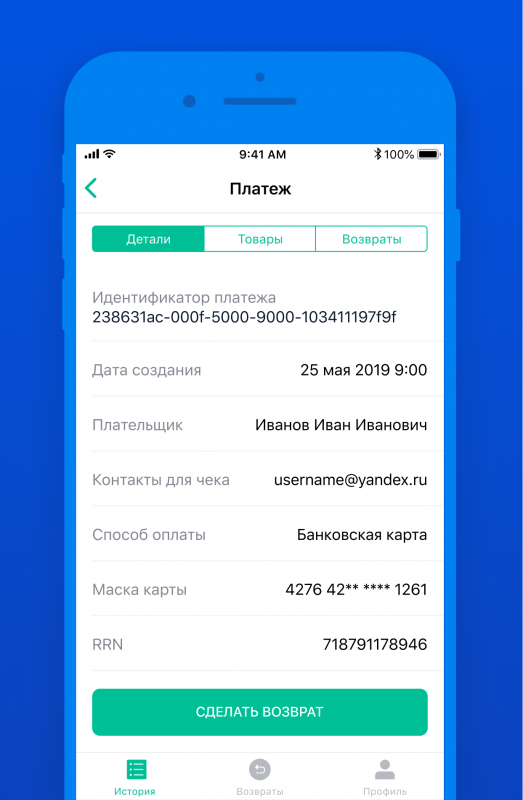 задавать фильтры;смотреть подробности конкретного платежа;возвращать клиентам деньги без смс-подтверждения;следить за историей.Если в аккаунте пользователя несколько интернет-магазинов, в приложении Яндекс.Кассы отобразятся профили каждого — между ними легко переключаться.