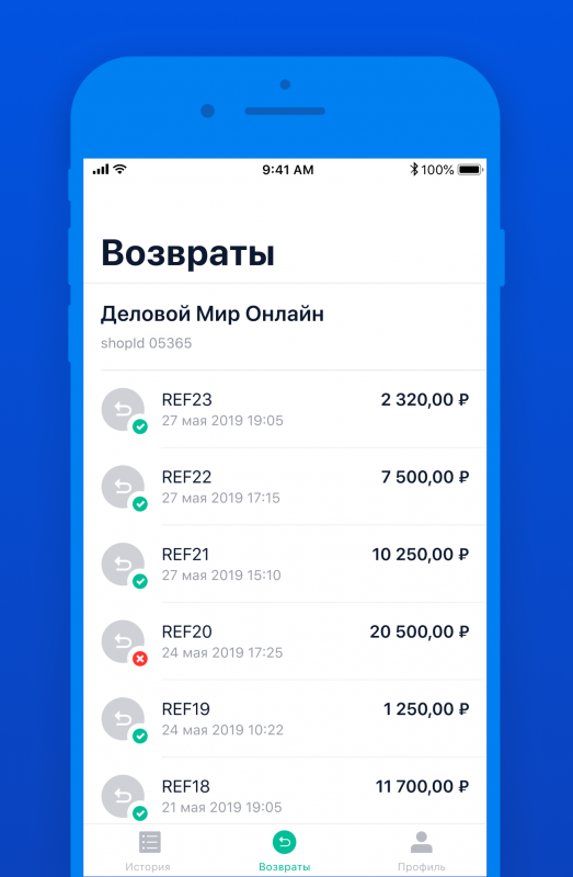 Еще владельцы-интернет магазинов могут отслеживать в приложении детали платежей и возвратов:
