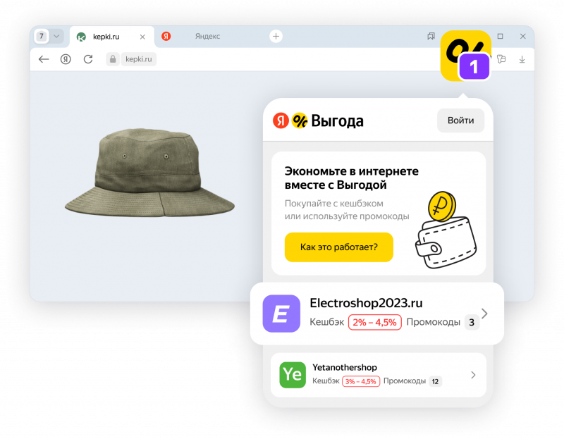 Яндекс Выгода — это расширение для браузеров, благодаря которому пользователи видят доступные промокоды и кешбэк на вашем сайте.