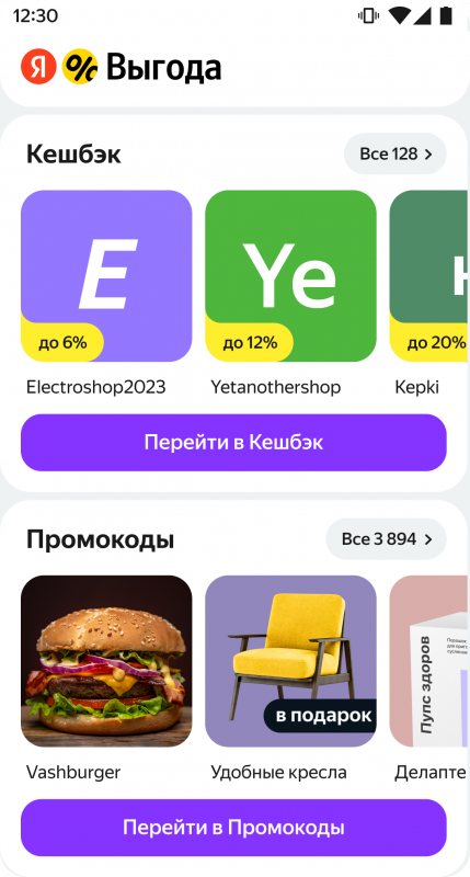 А в мобильном Яндекс Браузере и приложении Яндекс — с Алисой на смартфонах пользователям доступен специальный сайт Выгоды с каталогом акций.