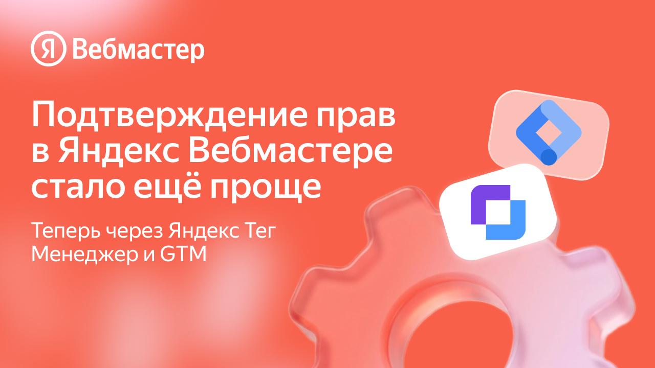 Яндекс Вебмастер запускает новую функцию: подтверждение прав на сайт через системы управления тегами — Яндекс Тег Менеджер и Google Tag Manager (GTM).