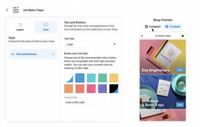 Как утверждается в заявлении, Facebook Shops бесплатный и простой в использовании. Настройка самого магазина не отнимет много времени — все интуитивно понятно. Пользователи смогут выбирать стиль магазина, основные цвета, размеры текста и кнопок и т.д.