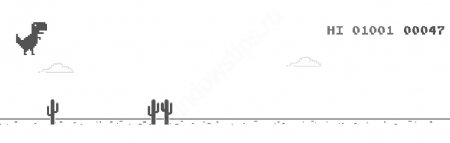 Чтобы играть в Динозавра в Гугл Хром, достаточно зайти в браузер. Если вы пытаетесь открыть страницу в веб-проводнике, а Интернета нет, появляется Динозаврик. Он начинает бежать сразу после нажатия на пробел. Суть игры для Гугл Хром незамысловата — перепрыгивать через препятствия. В некоторых случаях необходимо пригнуться. Таким образом, главный герой умеет делать только три вещи — бежать, прыгать и пригибаться. Управление осуществляется с помощью стрелки на клавиатуре (вниз), а также пробела.