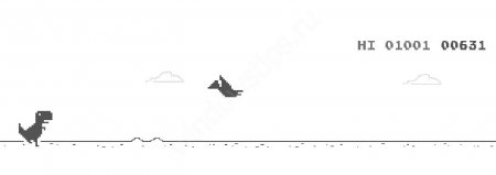 При достижении где-то 300 очков на пути Динозаврика появляются летающие птеродактили. В зависимости от высоты полета их можно перепрыгнуть или пригнуться. Кроме того, в некоторых версиях можно менять время суток — устанавливать в настройках день или ночь. Еще раз отметим, что в Динозаврике не предусмотрено конца, поэтому пройти его не получится.